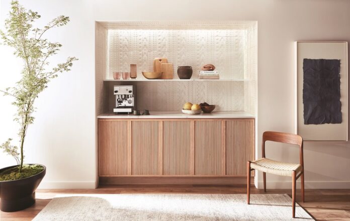 For a stunning kitchen backsplash that presents an artful, visually compelling pattern within a room, opt for a textured tile like the bespoke Senso by Kelly Wearstler collection. Designed by award-winning American designer Kelly Wearstler in a collaborative partnership with ANN SACKS and handcrafted in its Portland, Oregon, factory, this stoneware tile collection imparts the beauty of plaster without the upkeep and expense.