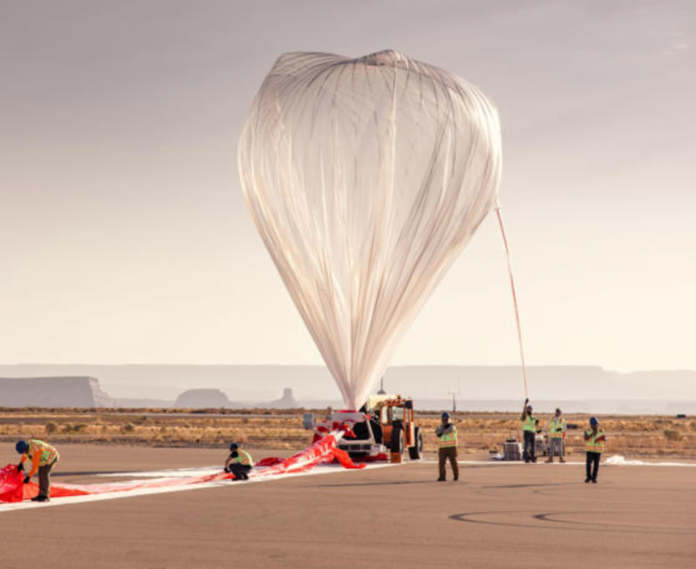 El equipo de lanzamiento de World View llena un globo estratosférico antes de su lanzamiento en Page, Arizona.