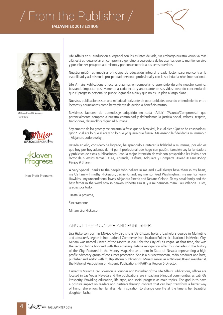 Home eMagazine Life Affairs – Fall/Winter 2018 eMagazine Life Affairs – Fall/Winter 2018 By Editorial Team LAP - July 29, 2020 FacebookTwitterPinterestWhatsApp LEAVE A REPLY Cancel replyLog in to leave a comment Post Recientes Museum of Illusions Hits Jackpot with Massive New Museum Coming to Las Vegas Editorial Team LAP - November 2, 2022 0 Las vacunas contra el COVID-19 reducen, no aumentan, el riesgo de muerte fetal Jessica McDonald - November 21, 2022 0 El espectacular vestido rojo de Salma Hayek Editorial Team LAP - May 4, 2023 0 Ensayos clínicos no encuentran aumento en mortalidad entre pacientes con COVID-19 tratados con remdesivir,... Saranac Hale Spencer - April 11, 2022 0 Summer in Las Vegas is Stacked with Spectacular Entertainment Editorial Team LAP - July 17, 2023 0 Consejos que no todos nos dan Vía: Liderazgo Millonario - October 4, 2021 0 Distintas celebridades asistieron al partido inaugural de la Copa América 2024 Editorial Team LAP - June 21, 2024 0 Con una notable emoción, CONMEBOL informó que múltiples celebridades de Hollywood y del deporte estadounidense acudieron al partido inaugural de la Copa América 2024... Espectáculo deportivo y musical en la inauguración de la Copa América... June 20, 2024 Nuevas fechas y paquetes VIP para la residencia de los Eagles... June 20, 2024 ¿Cómo prevenir un golpe de calor? June 19, 2024 Los Heat Latin Music Awards celebran por lo alto su décimo... June 19, 2024
