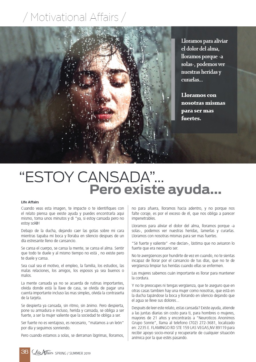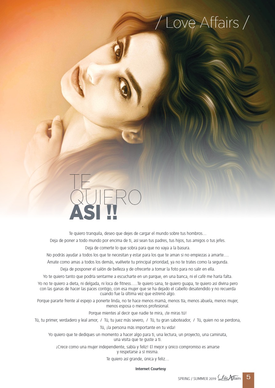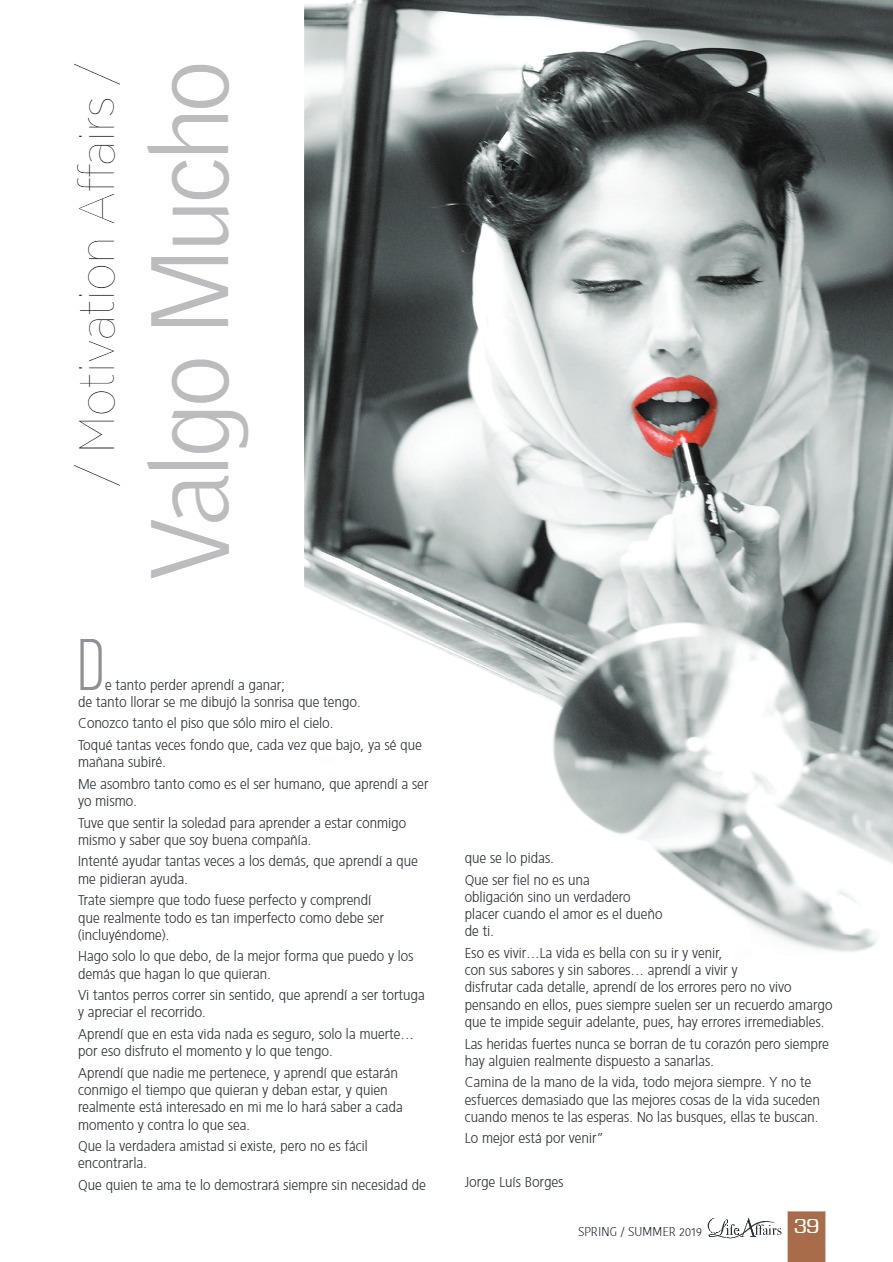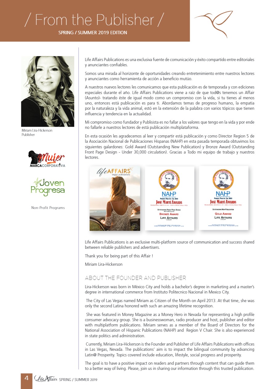 Home eMagazine Life Affairs – Spring/Summer 2019 eMagazine Life Affairs – Spring/Summer 2019 By Editorial Team LAP - July 29, 2020 FacebookTwitterPinterestWhatsApp LEAVE A REPLY Cancel replyLog in to leave a comment Post Recientes Los celos: explorando una emoción peligrosa Editorial Team LAP - June 24, 2023 0 Feliz Año 2023 Editorial Team LAP - December 31, 2022 0 Los fuertes vientos azotarán Arizona mientras se espera nieve y temperaturas bajo cero en... Editorial Team LAP - February 20, 2023 0 Los Heat Latin Music Awards celebran por lo alto su décimo aniversario Editorial Team LAP - June 19, 2024 0 Piden mayor participación del gobierno federal Editorial Team LAP - August 24, 2022 0 FEMA Staff and Contracted Medical Workers Are Required to Follow Vaccine Mandate Cecelia Vieira - October 26, 2021 0 Distintas celebridades asistieron al partido inaugural de la Copa América 2024 Editorial Team LAP - June 21, 2024 0 Con una notable emoción, CONMEBOL informó que múltiples celebridades de Hollywood y del deporte estadounidense acudieron al partido inaugural de la Copa América 2024... Espectáculo deportivo y musical en la inauguración de la Copa América... June 20, 2024 Nuevas fechas y paquetes VIP para la residencia de los Eagles... June 20, 2024 ¿Cómo prevenir un golpe de calor? June 19, 2024 Los Heat Latin Music Awards celebran por lo alto su décimo... June 19, 2024